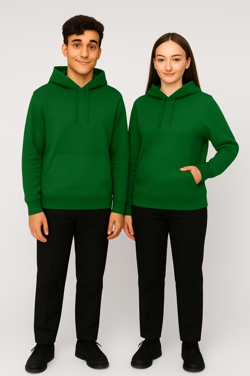 Okul kıyafet renklerimiz üst forma yeşil renk, alt forma siyah pantolon ya da eşofman şeklinde belirlenmiştir. Örnek tasarımlar fotoğraflarda mevcuttur.